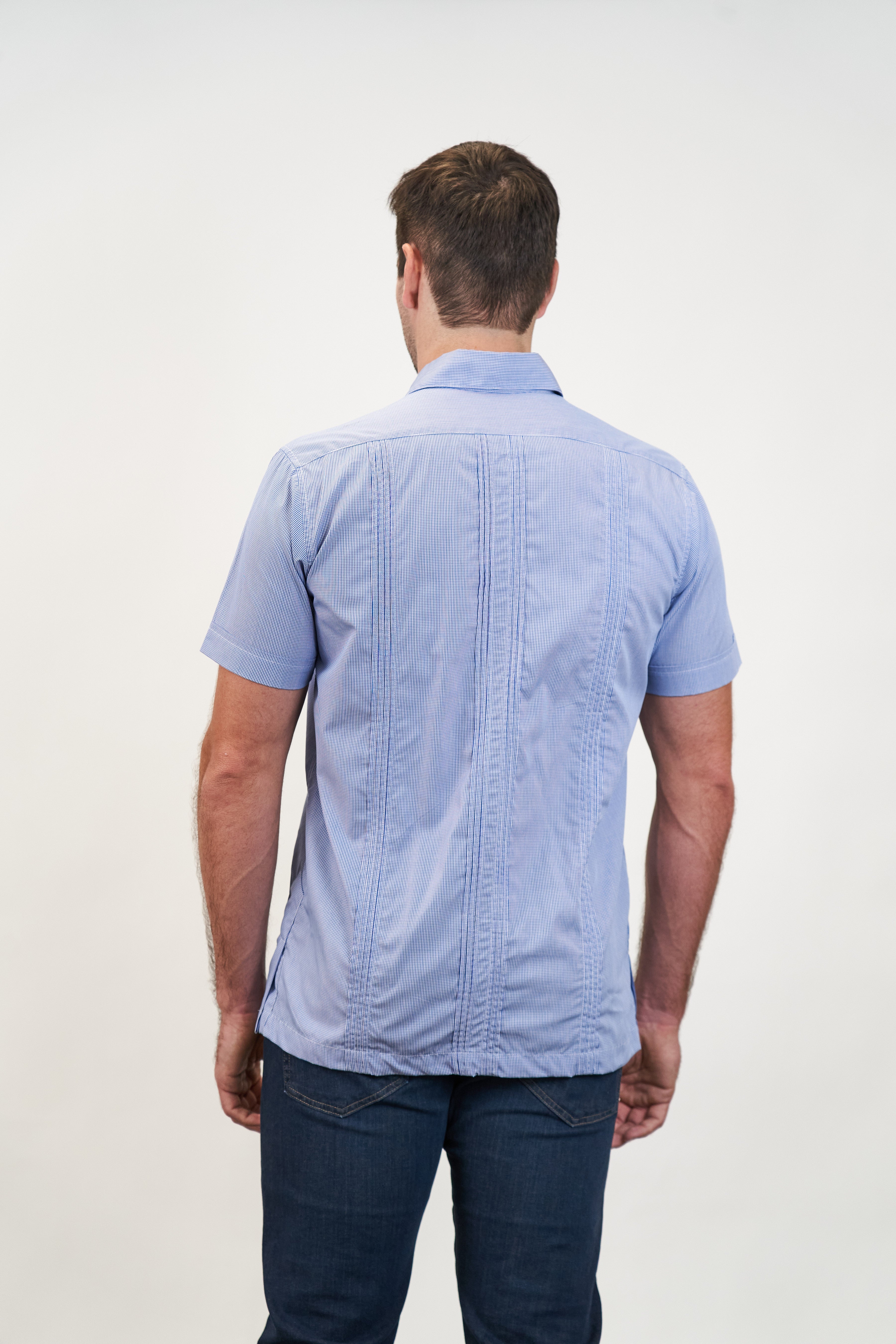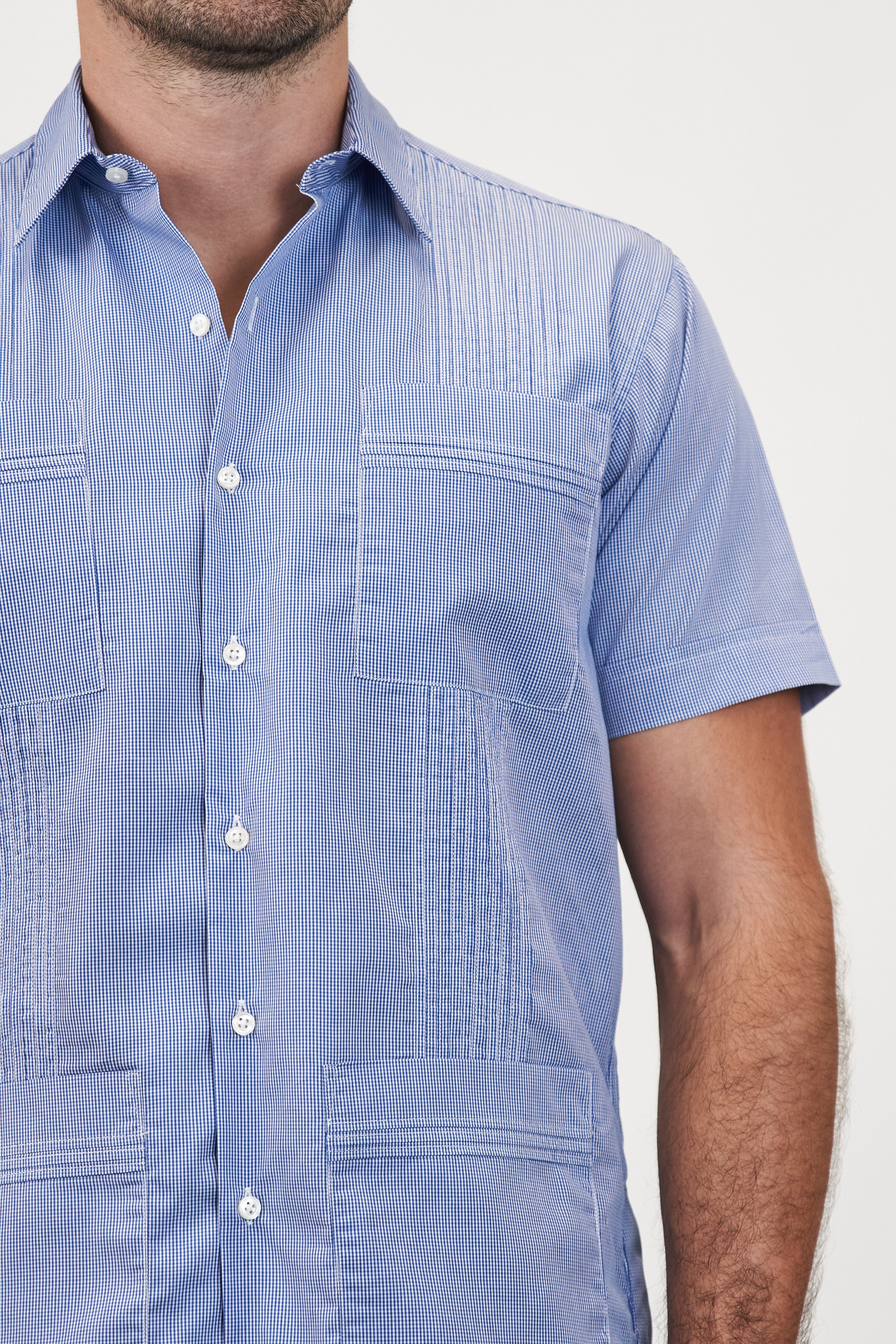 Blue Gingham 100% Cotton Short Sleeve Guayabera Shirt