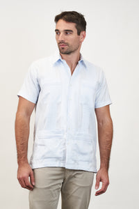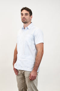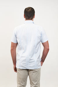 Light Blue Solid Woven 100% Cotton Short Sleeve Guayabera Shirt