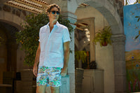 San Cristobal’s El Jefe Guayabera offers an authoritative take on this casual look. This version does not have embroidery, but features additional front vertical pleating, four pockets and the same cut and fit of the Hemingway (with a little less flair).