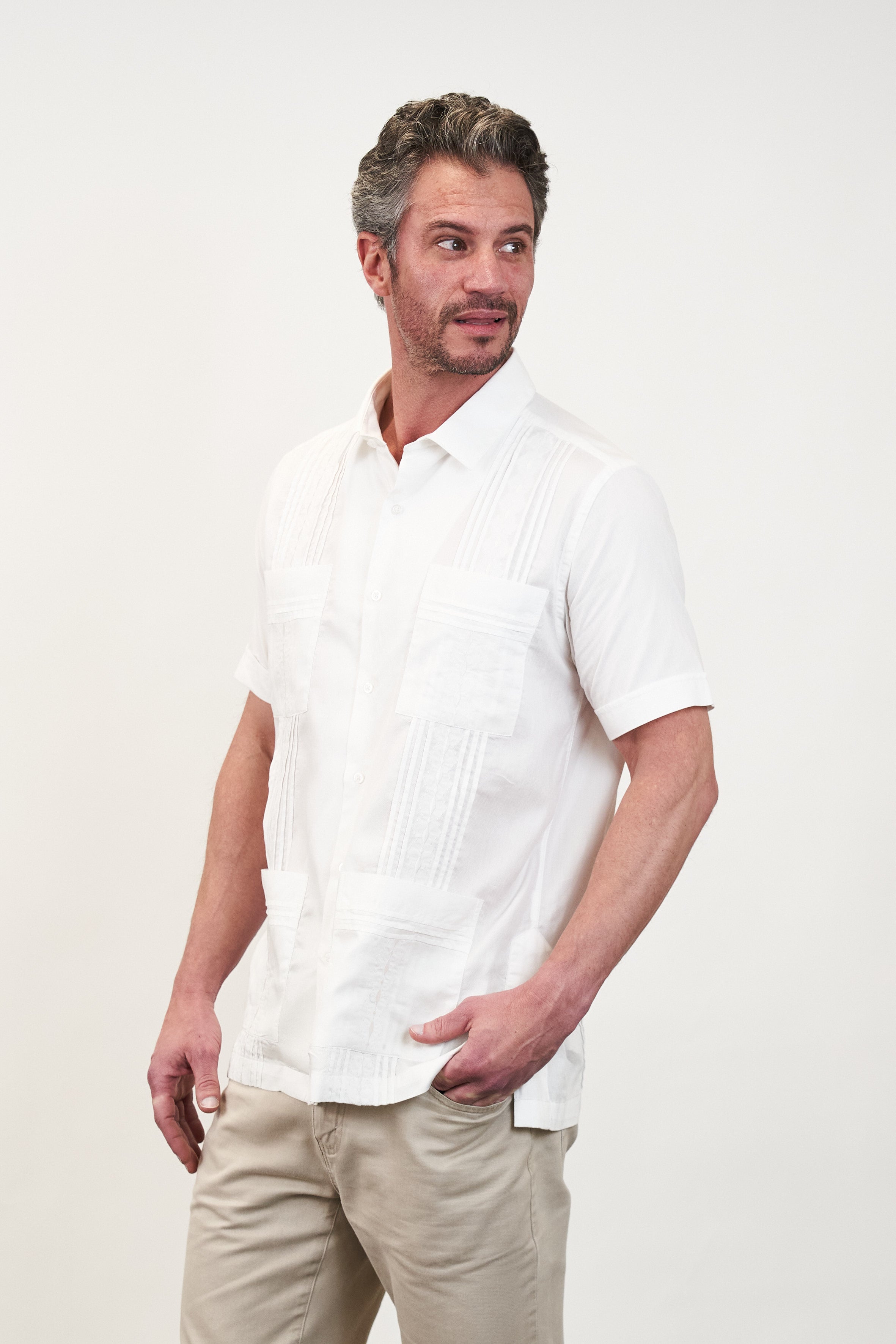 The San Cristobal Classic Guayabera is our most popular and expressive guayabera in the entire shirting line. The distinctive pleats and detailed embroidery will appeal to the guy who has a flair for style and the confidence to express himself. It features four pockets, vertical pleating and intricate embroidery that gives this shirt an extra pop. Whether relaxing at your favorite beach resort, spending an evening with friends or enjoying sunset margaritas, the Classic Guayabera is guaranteed to help you stand out from the crowd.